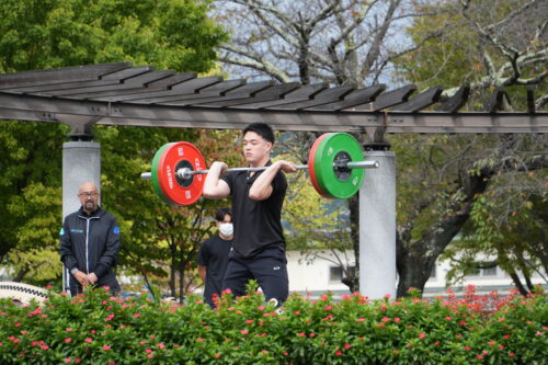同じく県代表の川口祐太朗選手(松商学園)による「クリーンアンドジャーク」のデモンストレーション