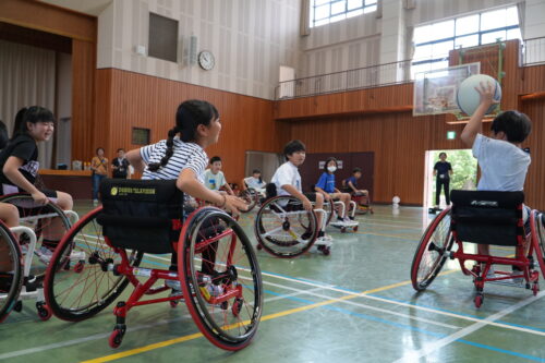 ほとんどの子ども達が初めての競技用車いすでしたが、1年生も含めてあっという間に乗りこなしてゲームに熱中していました。
