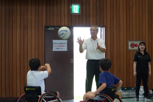「車いすポートボール」はパラ学でおなじみの”カトちゃん”こと加藤正さんが講師を担当。