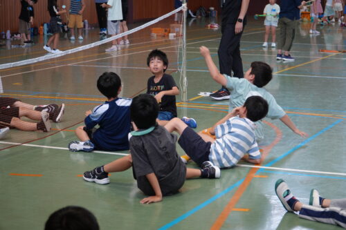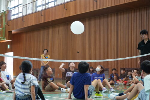 「おしりを床から離してはいけない」というシッティングバレー特有のルールに最初は上手く動けずに苦戦していた子どもたちも、徐々に移動のコツをつかんでくると風船の特徴も相まって中々点が決まらないロングラリーの熱戦を繰り広げていました。